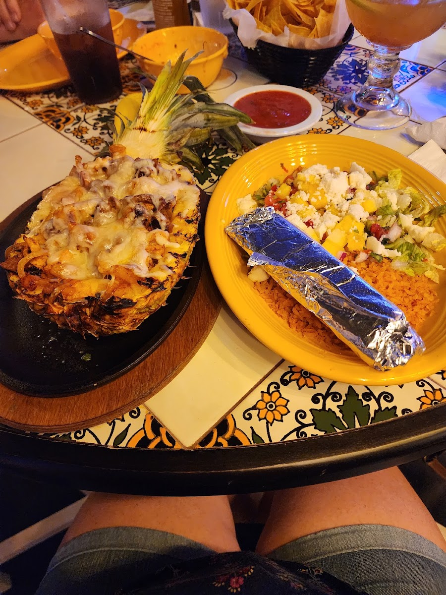 Lovely lunch at Pineapple Tequila. Our lunch was amazing. Chips, salsa, enchilada, burrito & margaritas were delicious! Service was great!