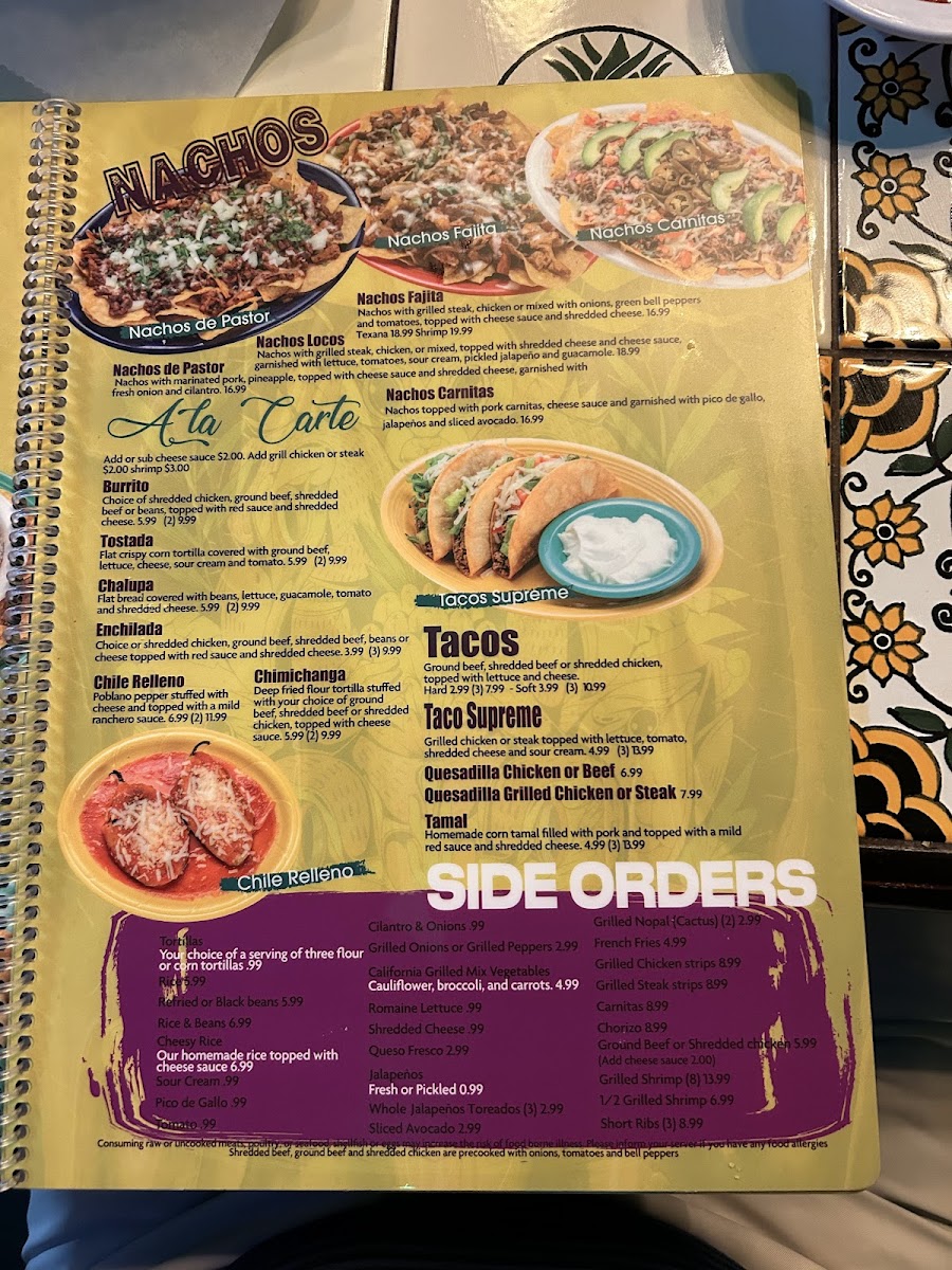 Pineapple Tequila Mexican Restaurant, Grill & Cantina Menu